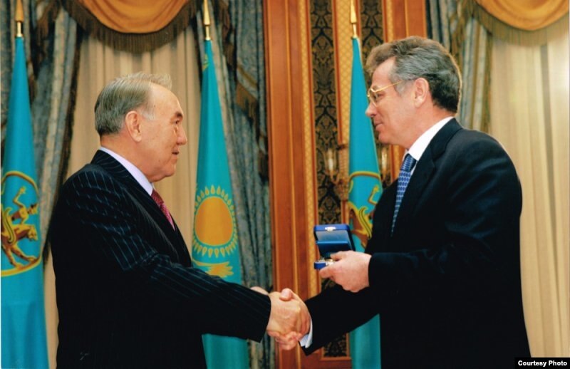 Президент РК вручает государственную награду Виктору Храпунову, которому до бегства за границу остается еще два года.